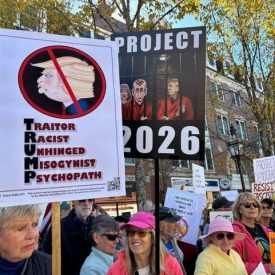 “No Kings” protesters gathered in the city Oct. 18, as well as several more Seacoast communities and about 2,500 locations around the nation, targeting what organizers call authoritarian actions by President Donald Trump.