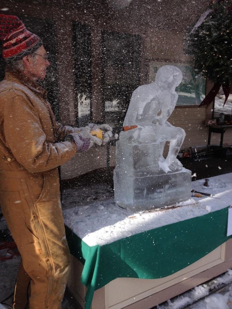 A longtime participant in the festival, Miller first learned ice carving while managing Best Westerns and Holiday Inns, where a chef shared techniques learned at a culinary school. Now in his 70s, Miller, who is also a wood carver, competes in about three events each year.