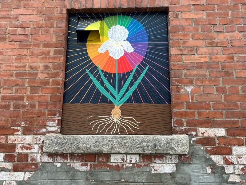 The controversy began in August, after three small murals funded by a diversity, equity and inclusion grant appeared on the side of a building that houses a restaurant and clothing store. Covering boarded-up windows, the murals show a white iris against a color wheel, two birch trees bending under a night sky, and a dandelion reaching skyward from an open book.