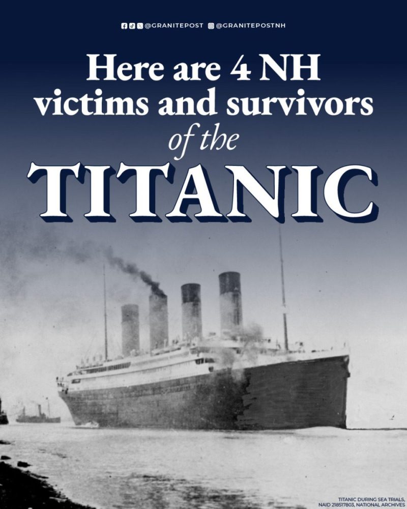 Of the 2,200 passengers and crew on board, only around 700 survived due to a lifeboat shortage. Researcher Chuck Anesi found that 97.22% of the 144 female first-class passengers were put into lifeboats and survived—while only 32.57% of the first-class men made it. Four of the people onboard had New Hampshire connections. Here’s a quick look at their stories: