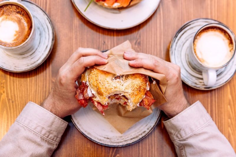 “There are several breakfast sandwiches to choose from, but many say the Bacon Me Crazy is next-level elite. It features a classic combo of egg, bacon, and cheddar cheese, plus maple syrup for a touch of sweetness, tomato for freshness, and a New York-style bagel for a satisfying bite.”