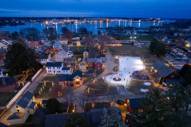 Visit the Puddle Dock neighborhood where, amidst the glow of candle lanterns, guests travel between historic houses and are greeted by musicians and performers reviving traditions of yesteryears. You’ll find costumed roleplayers portraying families from the waterfront neighborhood. Drink hot apple cider, warm up near a bonfire, indulge in old-fashioned holiday shopping at Pickwick’s at the Banke, and be captivated by Ice Dance International’s Currier and Ives Vintage skaters with performances each night (Fridays and Saturdays at 6 and 7:30 p.m. and Sundays at 5 and 6:30 p.m.)