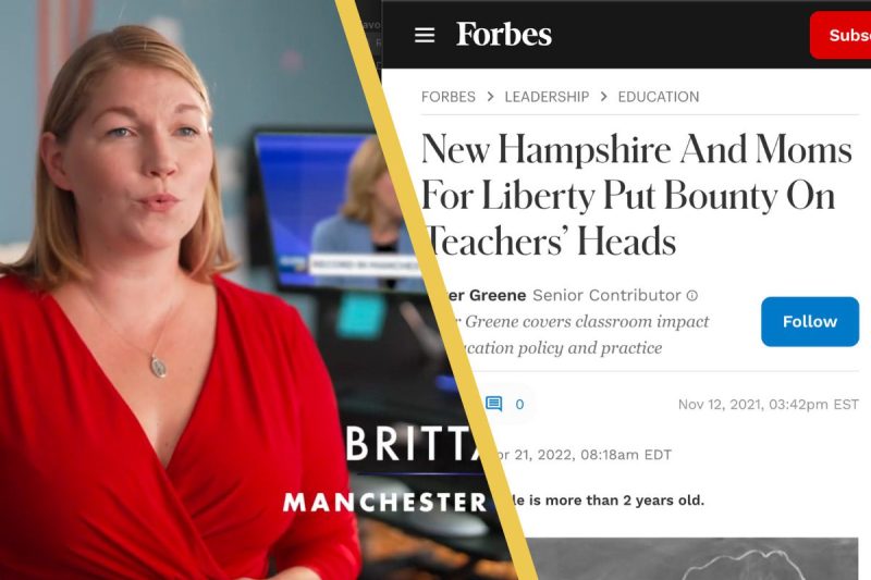 The New Hampshire branch of Moms for Liberty gained national attention for placing $500 “bounties” on teachers in the state and encouraging residents to report teachers who run afoul of the state’s so-called “divisive concepts” law, which was ultimately overturned by a federal judge earlier this year.