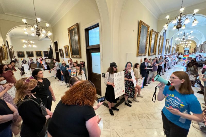 Hundreds of Granite Staters took over the second floor of the New Hampshire State House on Wednesday after Gov. Chris Sununu refused to meet with LGBTQ+ rights advocates seeking to discuss the urgent need to veto Republican-backed bills targeting trans youth in the state.