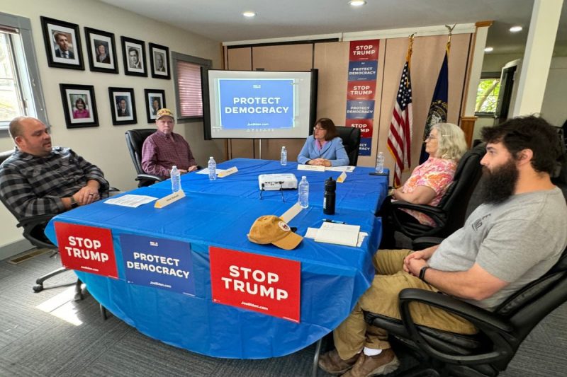 New Hampshire Congresswoman Annie Kuster, Capitol Police Officer Harry Dunn, veterans, and local leaders gathered for a roundtable discussion this week to discuss the importance of defending democracy in the upcoming midterm elections. (Colin Booth/Granite Post)