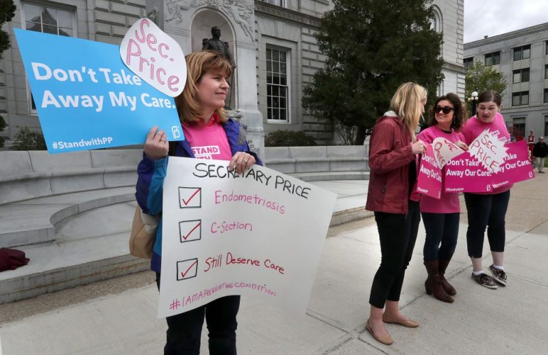 Protesters from the Planned Parenthood NH Action Fund outside the State House in Concord. (Photo by John Blanding/The Boston Globe via Getty Images)